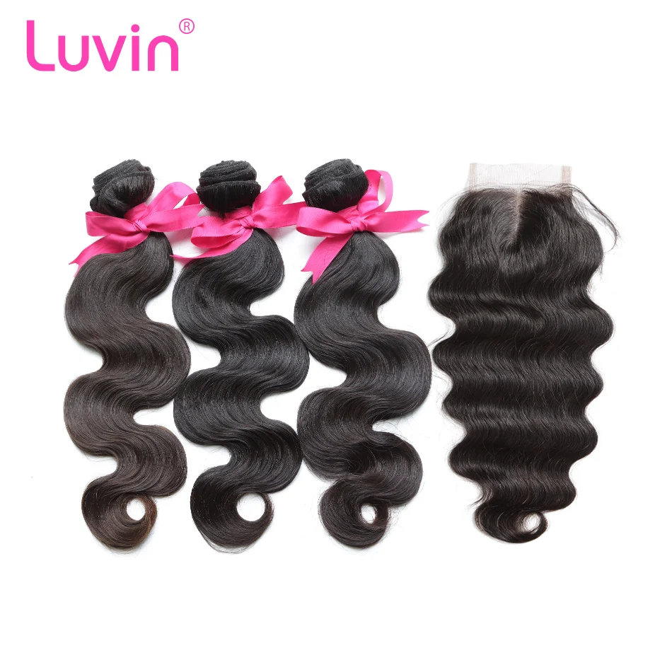 Luvin OneCut Hair Body Wave Malaysian 3 4 Bundles With Closure 100% Human Hair Extension Weaves Raw