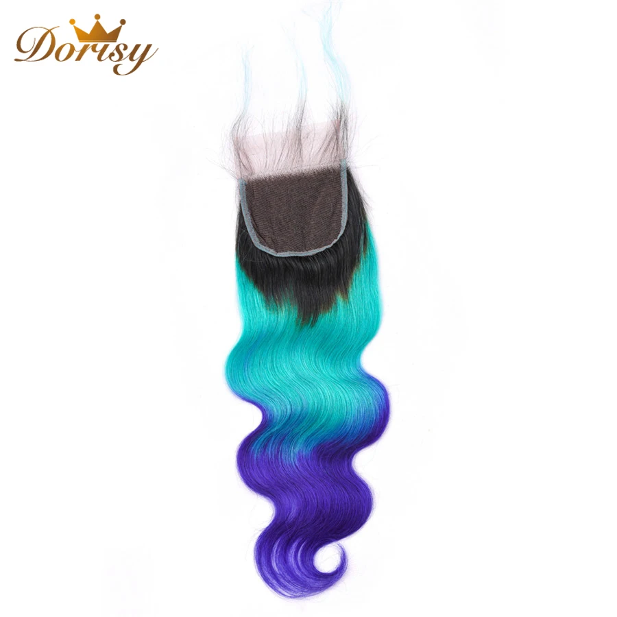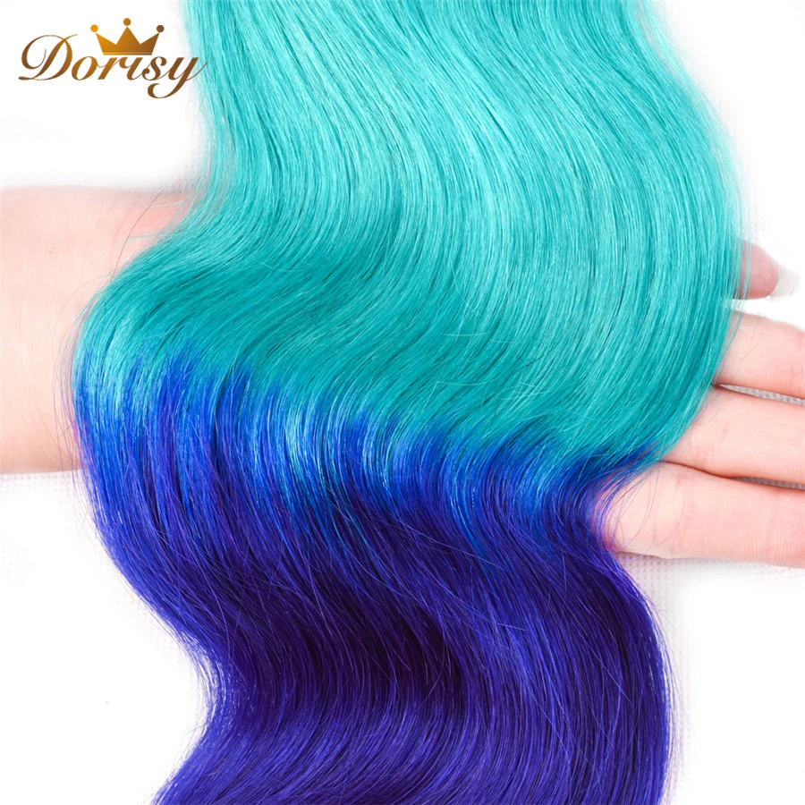 Pre Colored Body Wave Bundles With Closure T1b Green Blue Ombre Brazilian Human Hair Bundles With C