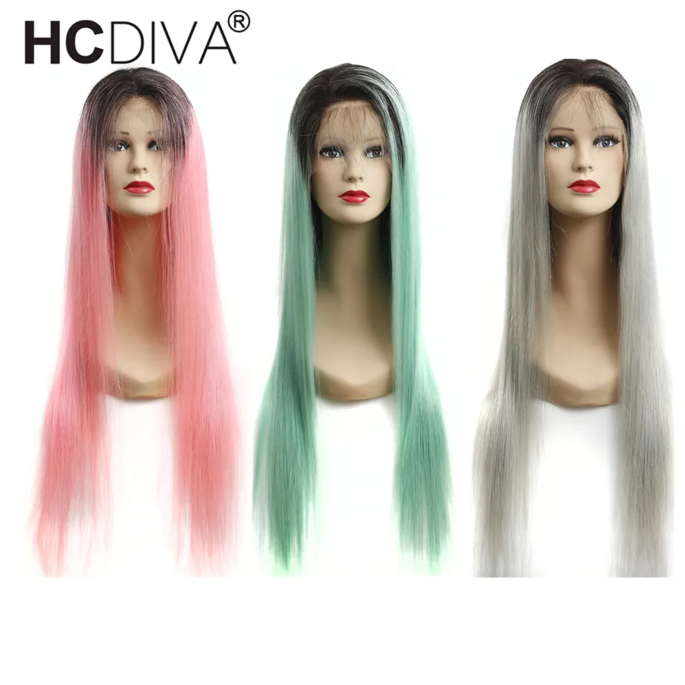 Ombre Human Hair Wigs Pre Plucked With Baby Hair 1B/613 1B/Pink 1B/Grey 1B/Green Full Lace Wigs 150