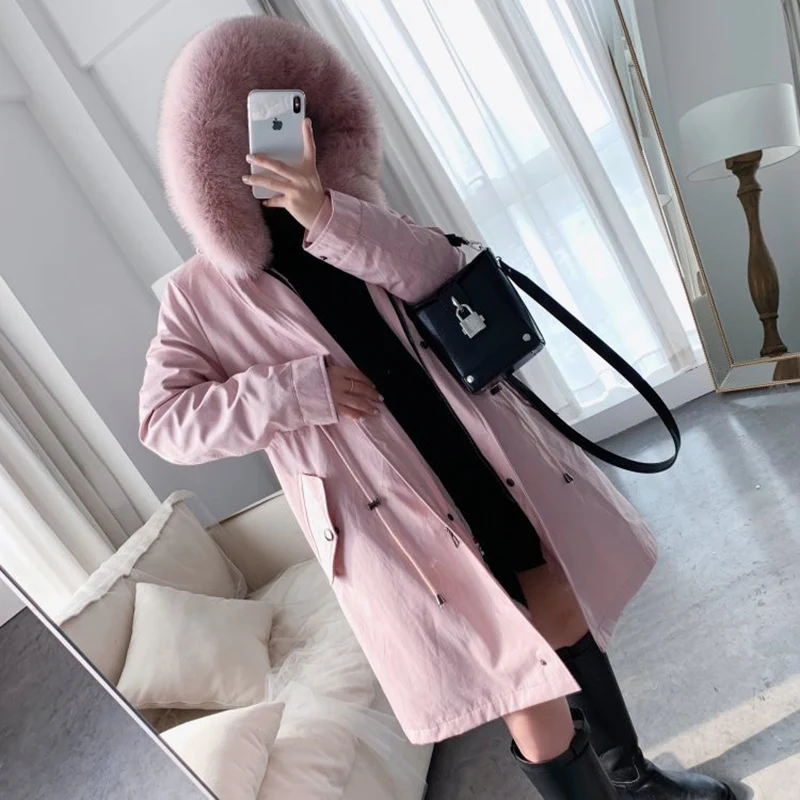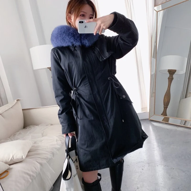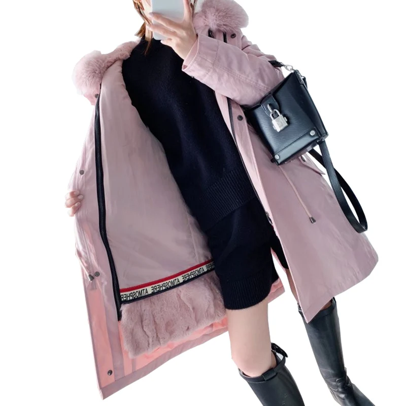 2019 New High quality Fur Parka Womens Winter Thicken Rex rabbit hair liner Coats Female Fox fur co